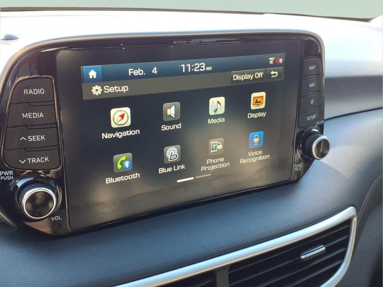 - Radio: Infinity Audio System w/Navigation -inc: 315-Watt, 8" color touchscreen, Apple CarPlay, Android Auto, 8 speakers, USB/AUX input jack, Bluetooth® hands-free phone system, SiriusXM satellite radio, HD Radio, VR, Blue Link connected car system, Clari-Fi music restoration technology, external amplifier and wireless device charging
